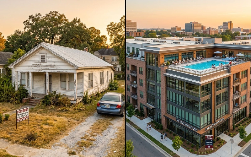 Luxury student housing seems to be the way to go in downtown Columbia, SC, these days. Not to mention, the demand for single-family rentals that are older in age, especially in Olympia and Granby, has softened up quite a bit. Things do get a bit challenging to the point where it may be time to get an exit strategy in place before things get a little too chaotic, like Saturdays in the fall at Williams-Brice Stadium (the only difference is that we’re talking about is the home game chaos of thousands of fans cheering loudly for those Gamecocks).